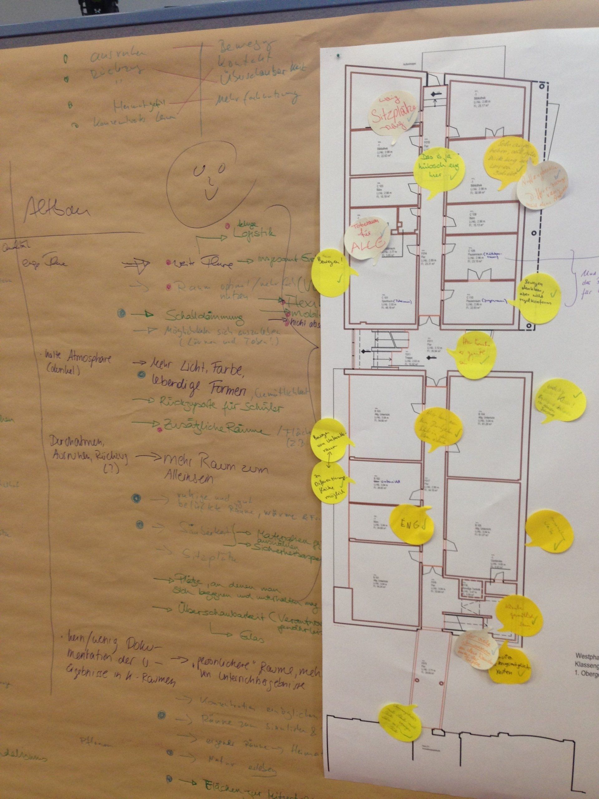 Eindrücke aus Prozessen zur Entwicklung von pädagogischen Anforderungen an Räume und Flächen mit Blick auf das Lernen in der Zukunft. (Bildersammlung im Aufbau)